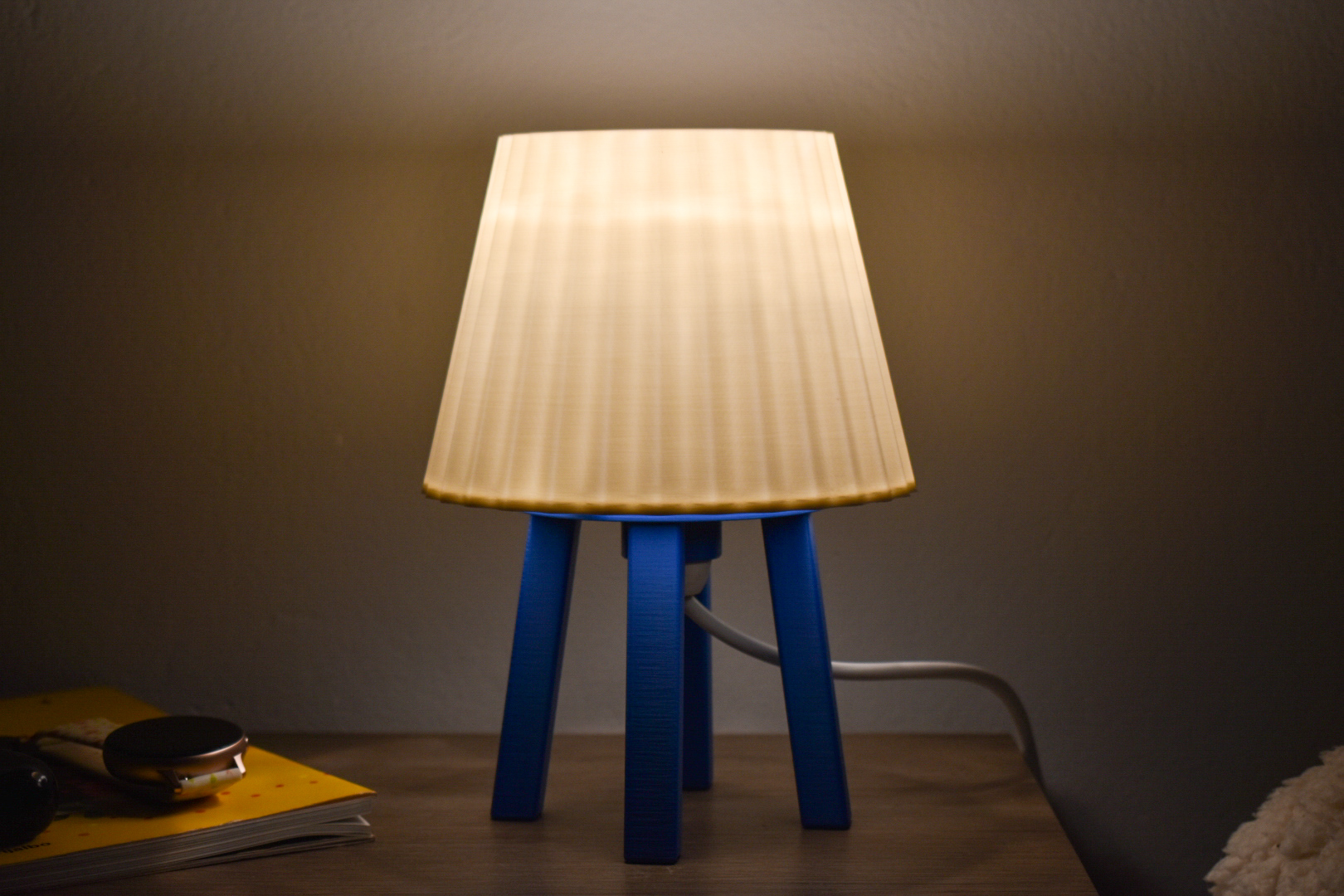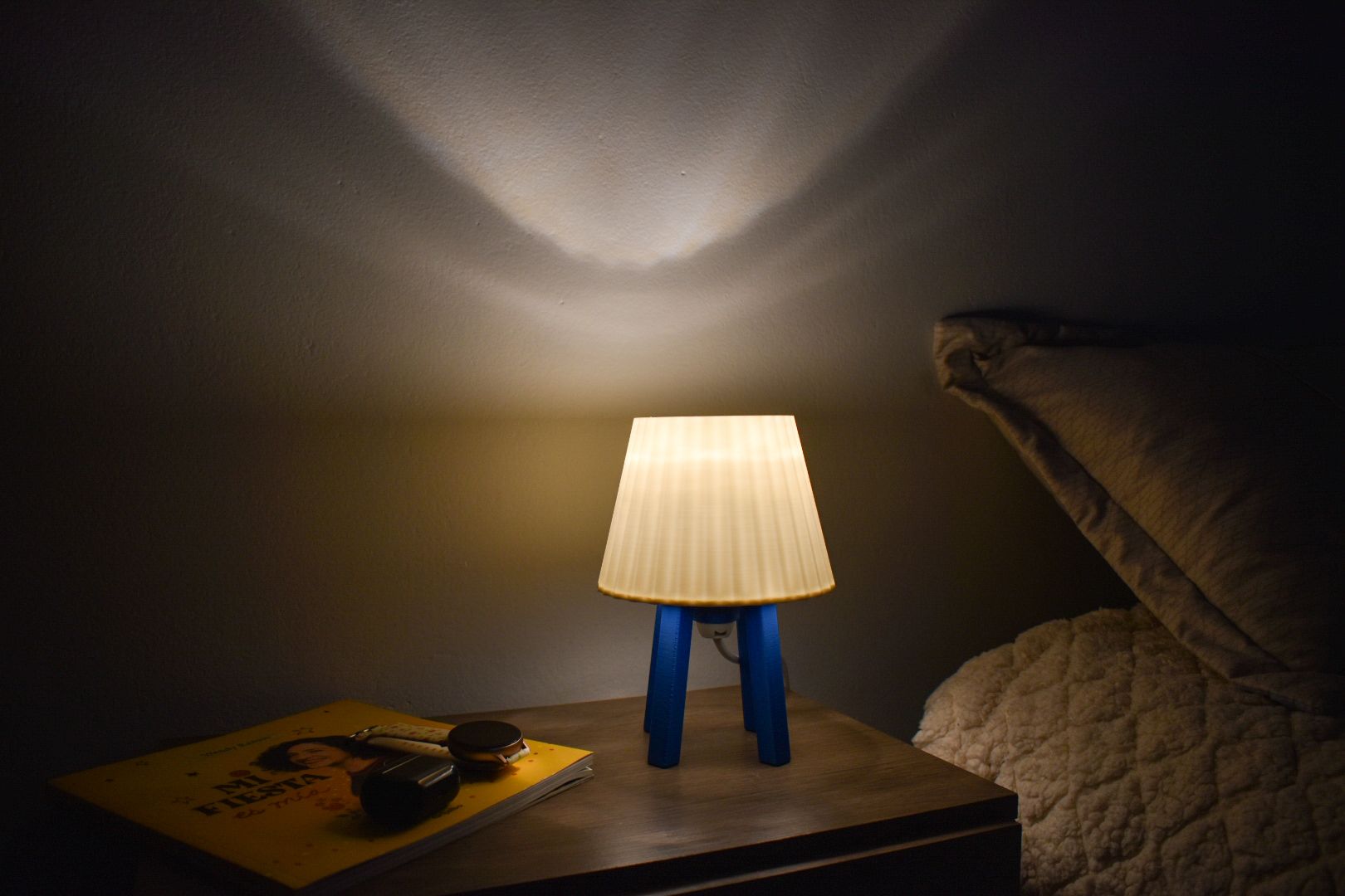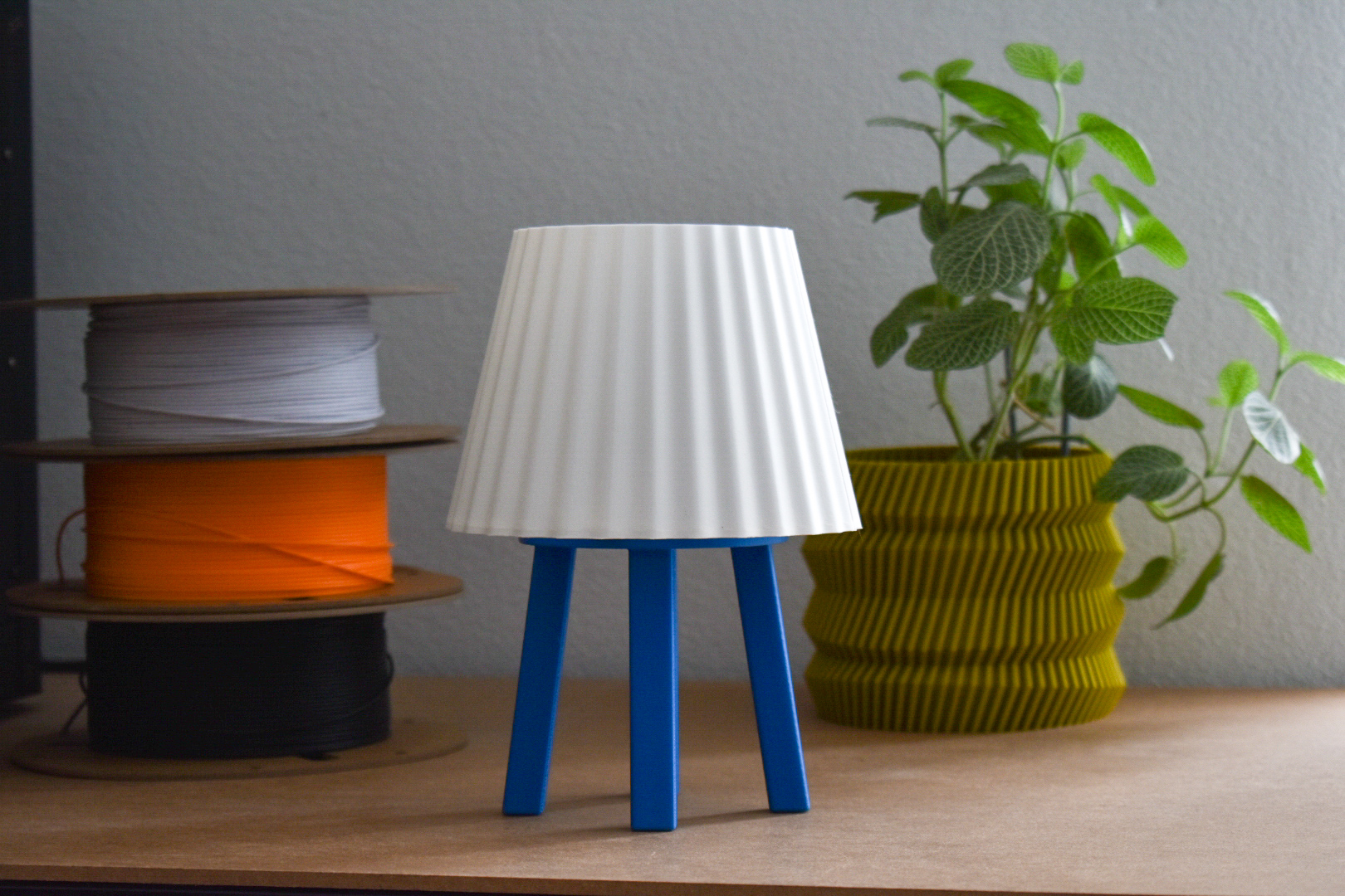 La Lámpara Medusa destaca por su diseño escandinavo y minimalista que combina una pantalla plisada de acabado mate con una base de patas en azul cobalto vibrante. Su forma simétrica y líneas limpias aportan carácter sin sobrecargar el ambiente, perfecta para espacios creativos, estudios o mesas de noche. Fabricada en impresión 3D con materiales sostenibles, esta pieza no solo ilumina, sino que también decora con personalidad.