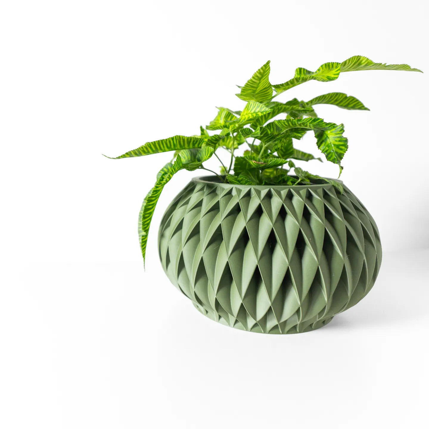 La Maceta Velux es una joya de diseño inspirada en el arte japonés del plegado. Su patrón tridimensional, impreso en 3D con precisión milimétrica, recuerda a una escultura de papel que cobra vida con cada ángulo de luz. Su color verde oliva realza la frescura natural de las plantas, convirtiéndola en una pieza decorativa que transmite armonía y sofisticación.