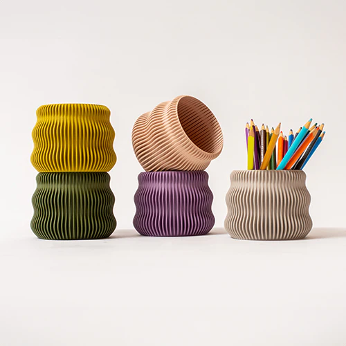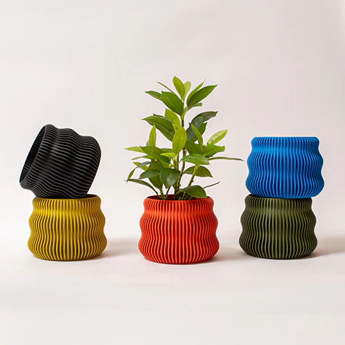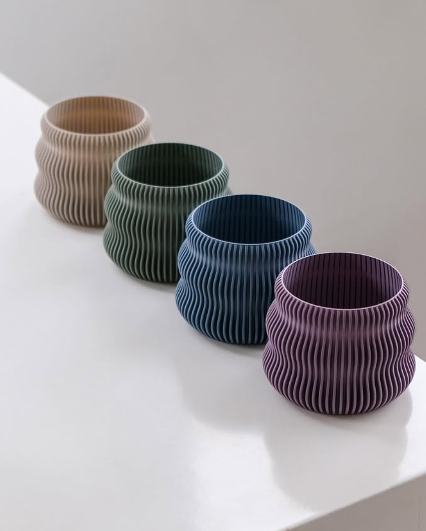 El Porta Maceta Camila se distingue por su forma cilíndrica estilizada y su textura de líneas verticales que evocan serenidad y orden. Su tono verde salvia en acabado mate lo convierte en una pieza versátil que se adapta tanto a espacios modernos como naturales. Gracias a su estructura interior amplia, está diseñado para contener macetas estándar sin necesidad de trasplantes, ofreciendo practicidad sin perder elegancia. Fabricado mediante impresión 3D con materiales sostenibles, es una alternativa funcional y decorativa para realzar tus plantas favoritas.